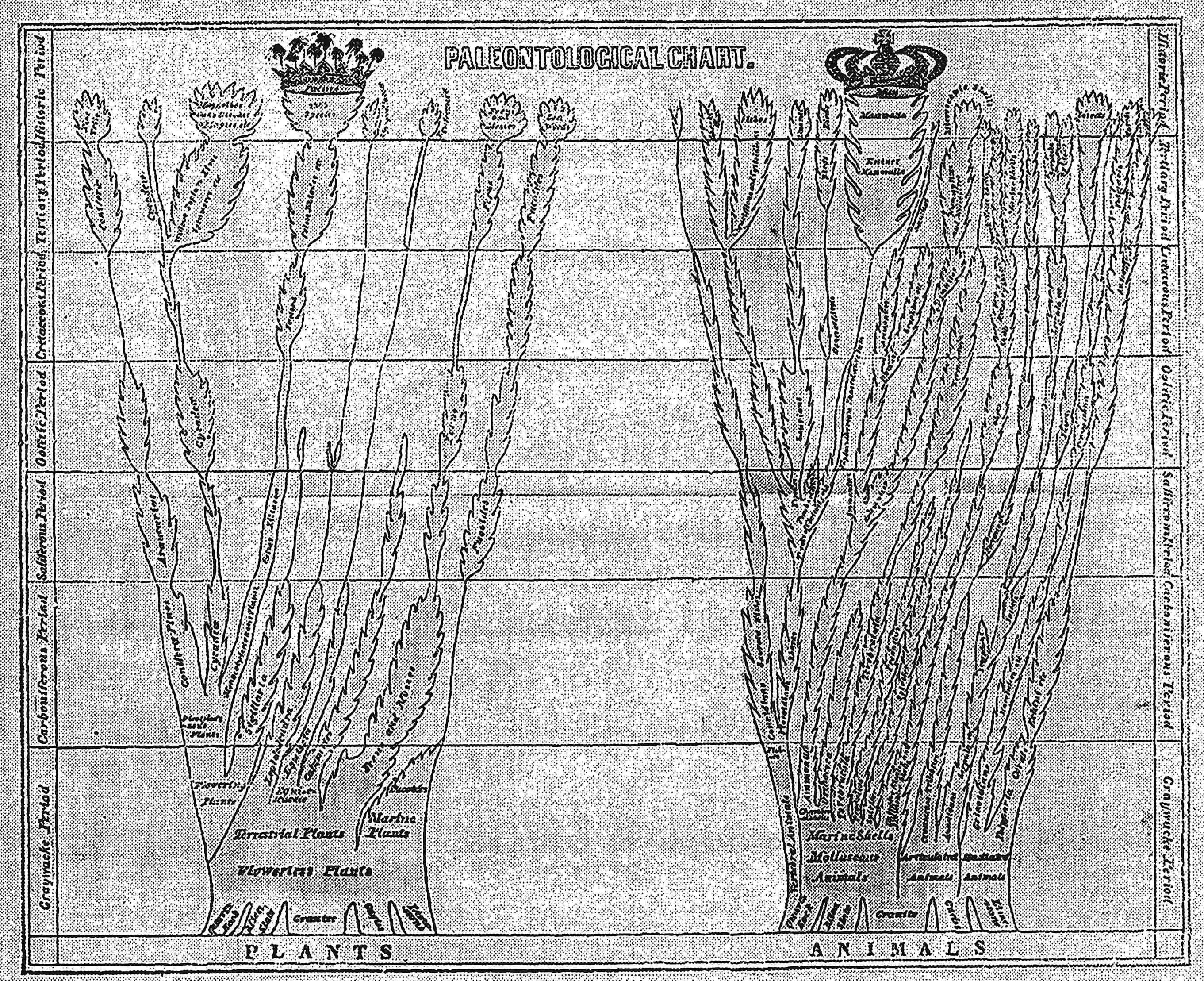 the objective fundamental scheme for all phylogenetic trees should, in my opinion, rather be something like the construction of fig. 31. Of course, for very simple cases the two-dimensional scheme is sufficient and for that reason preferable; for all other, however, I think the three-dimensional tree is more logical and promising.