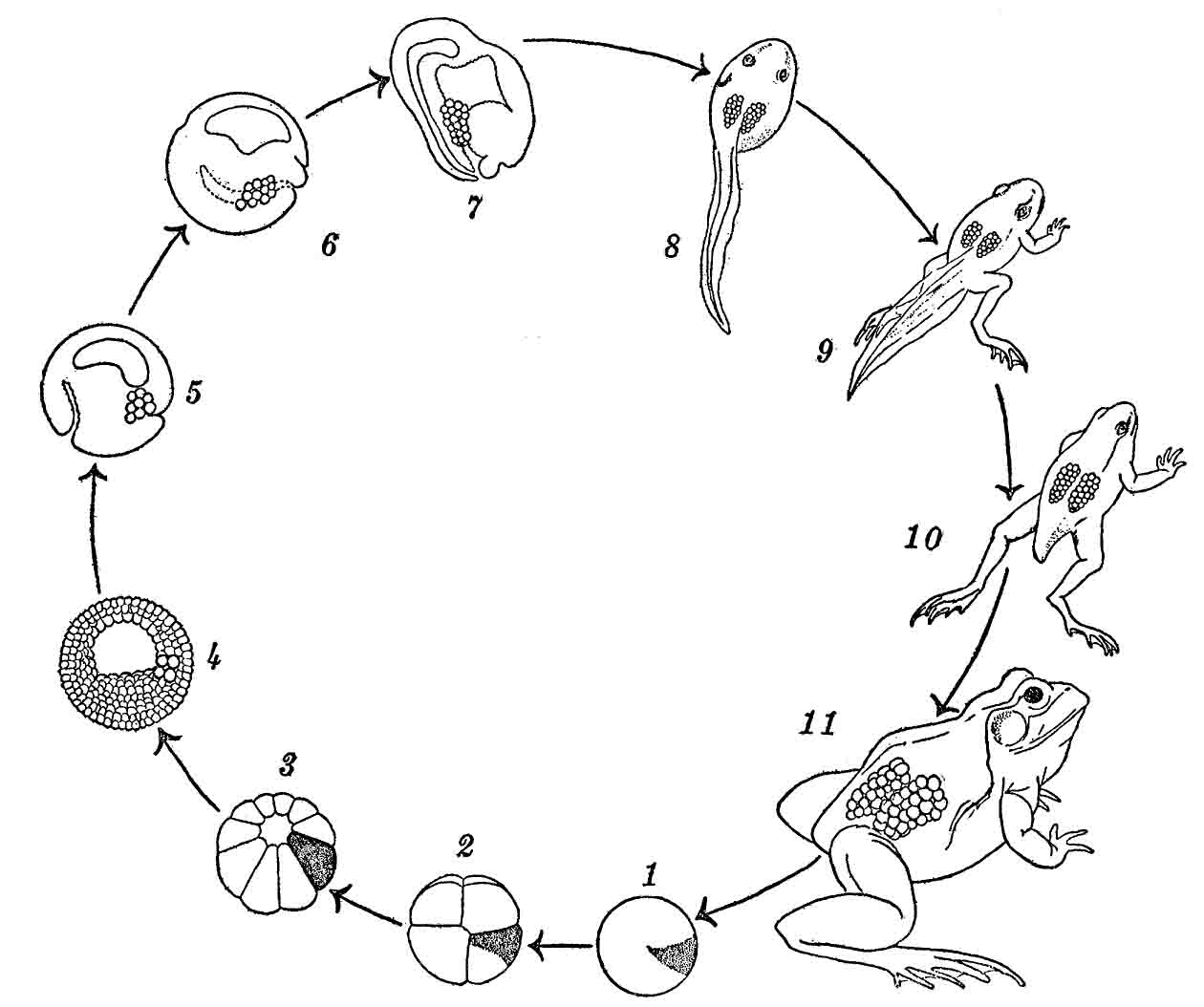 da es [das Tier] vom Zustande größter Lebensthätigkeit allmählich wieder zur Unvollkommenheit und Unbehülflichkeit herabsinkt, so hat man die gesammte Reihe von Veränderungen in seiner Entwickelung einem Kreislaufe verglichen und den Kreislauf des Lebens genannt, obschon die frühesten und spätesten Zustände nur eine negative Aehnlichkeit miteinander haben und deshalb keineswegs in einem Kreise aneinanderschließen.